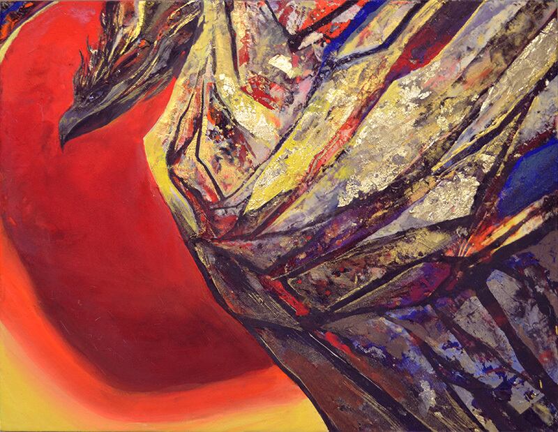 シナベニア製木製パネルに日本画岩絵具、樹脂、アクリル絵具、箔